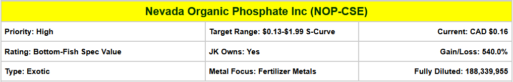 High Priority Exotic Type Favorite: Nevada Organic Phosphate Inc