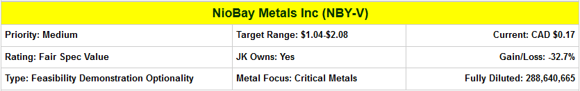 Medium Priority Feasibility Demonstration Favorite: NioBay Metals Inc